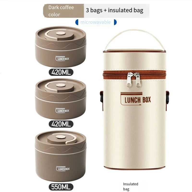 Food Warm Lunch Container,Stainless Steel Thermal Lunch Container Portable Thermal Bento Box Food Container Brown A