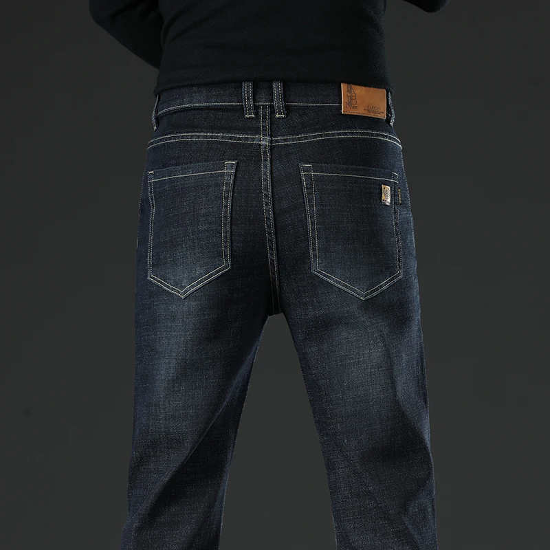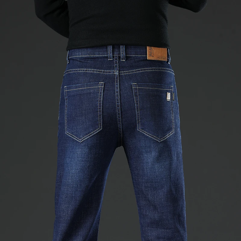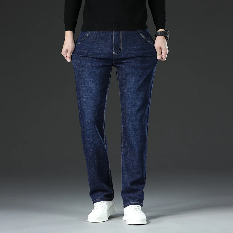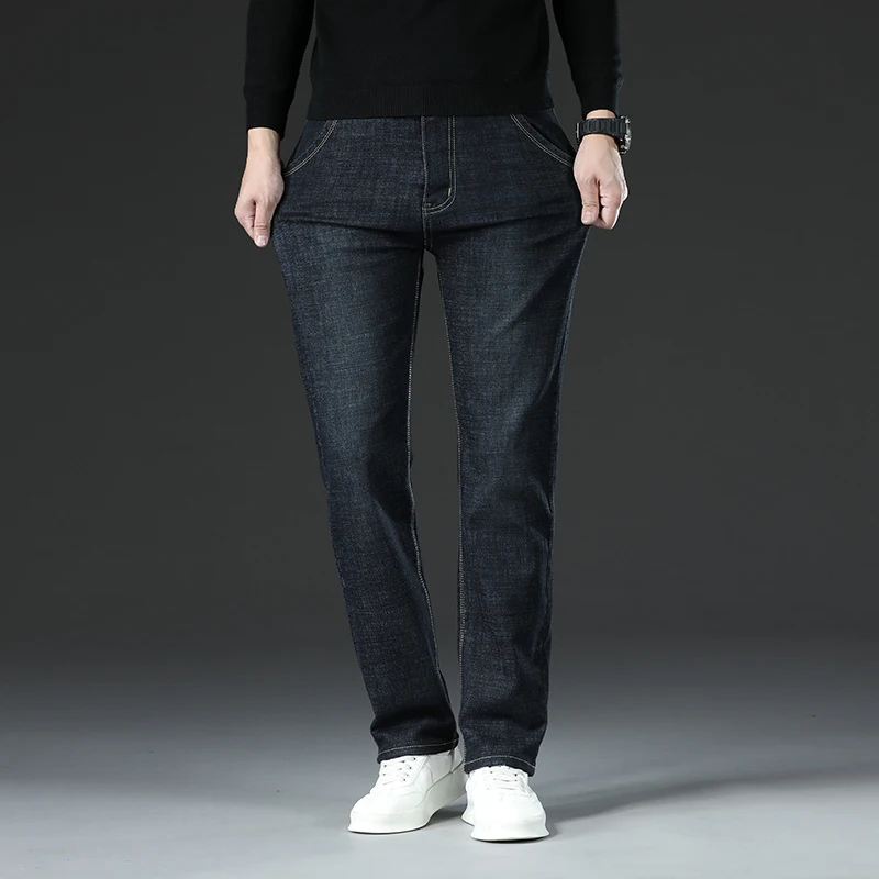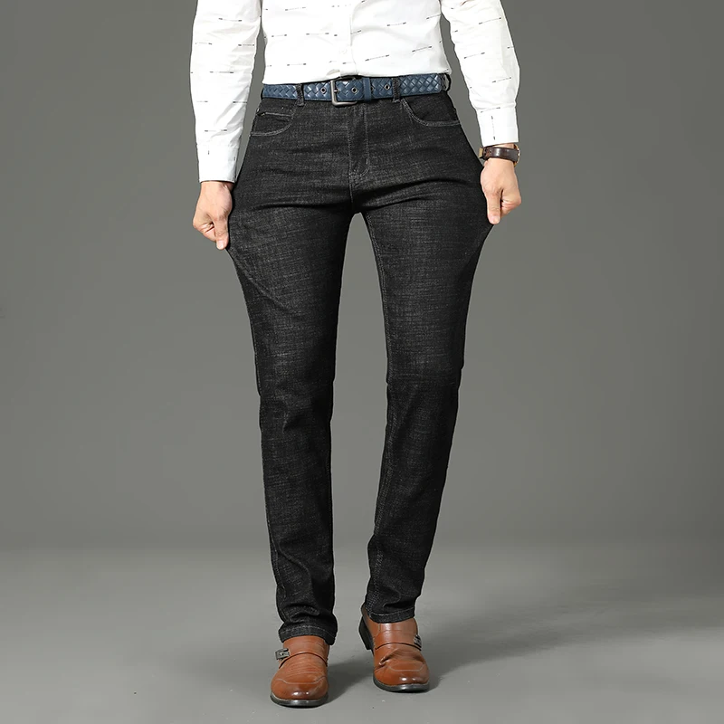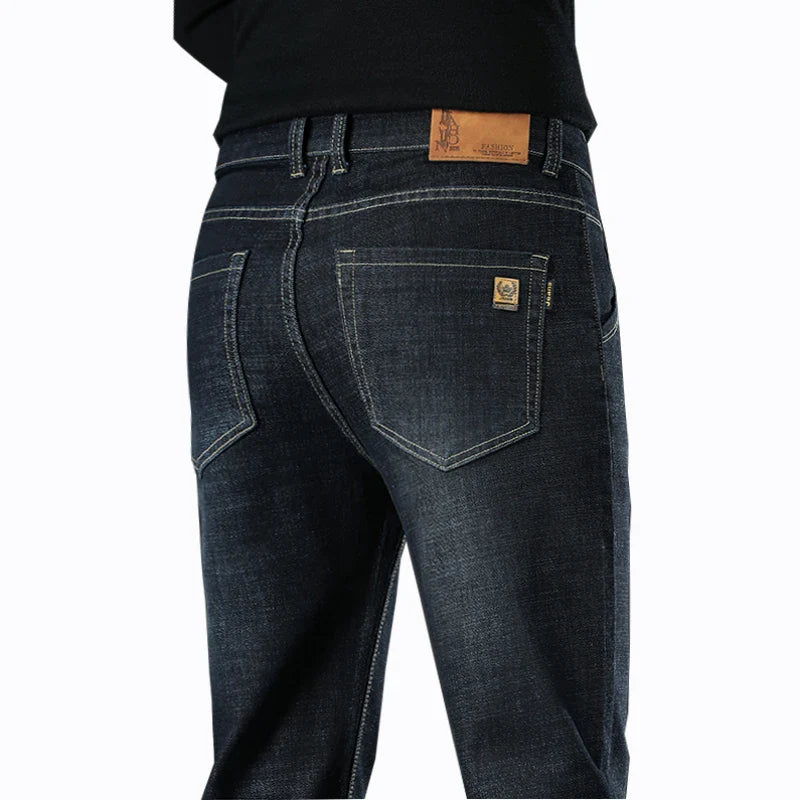 New Men Business Style Slim Fit Straight Jeans Fashion Classic Blue Black Male Stretch Casual Denim Trousers Plus Size 40