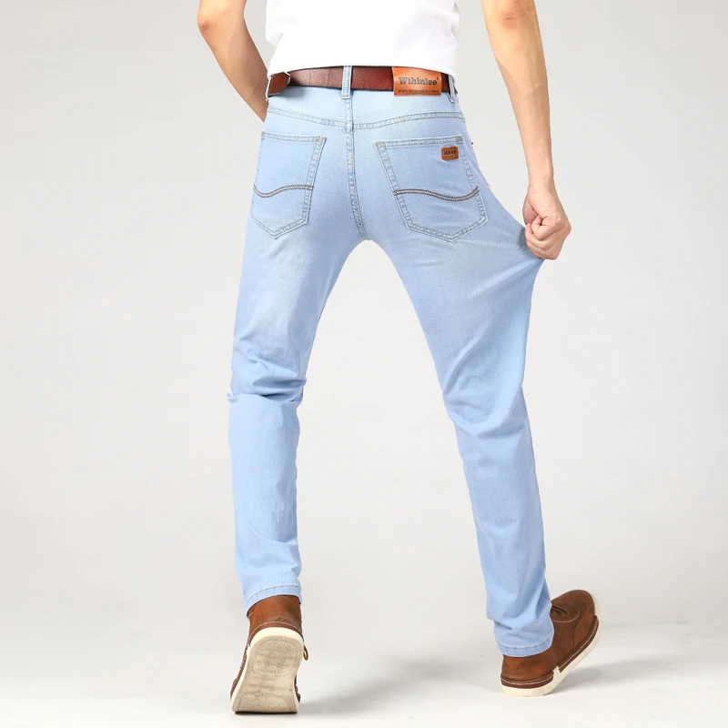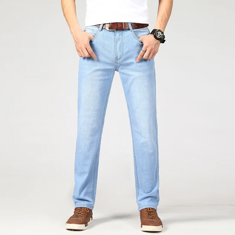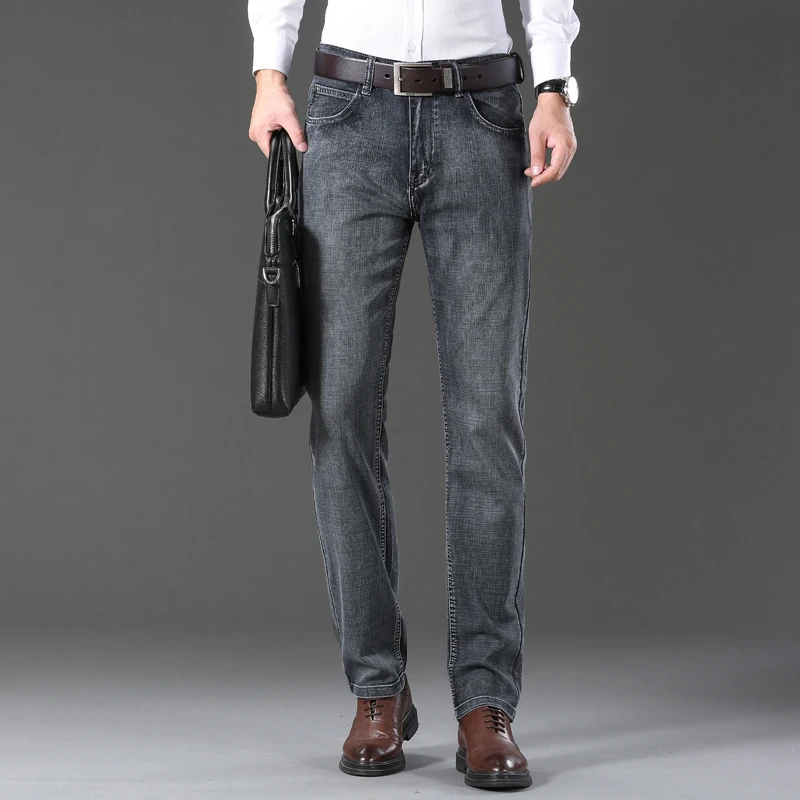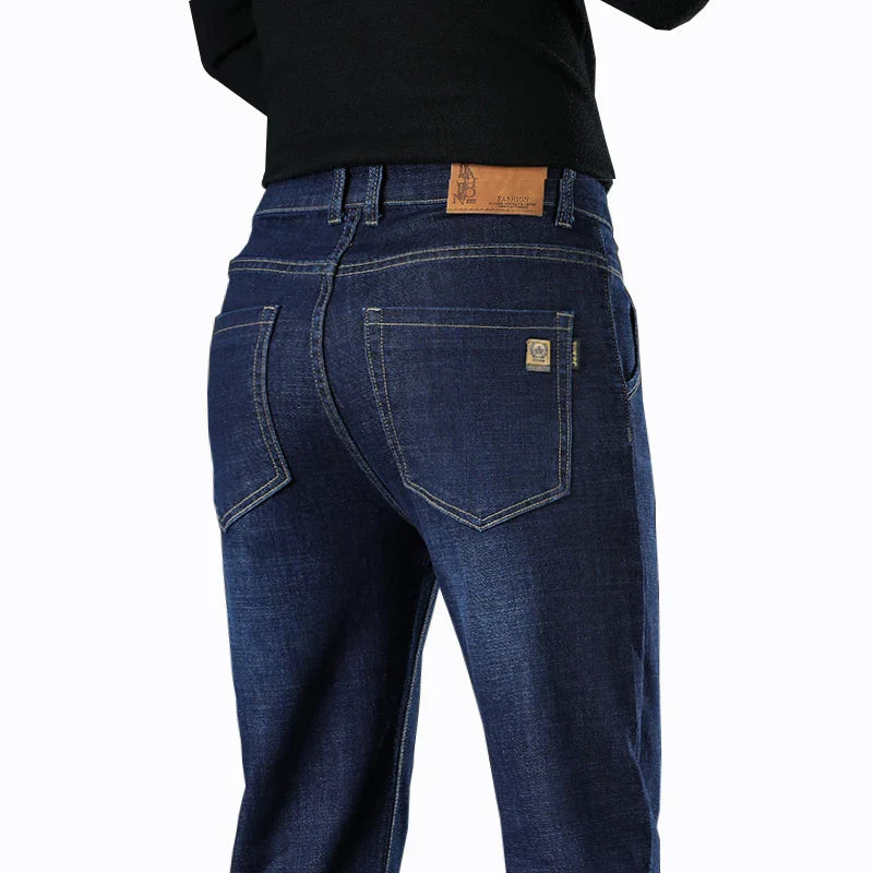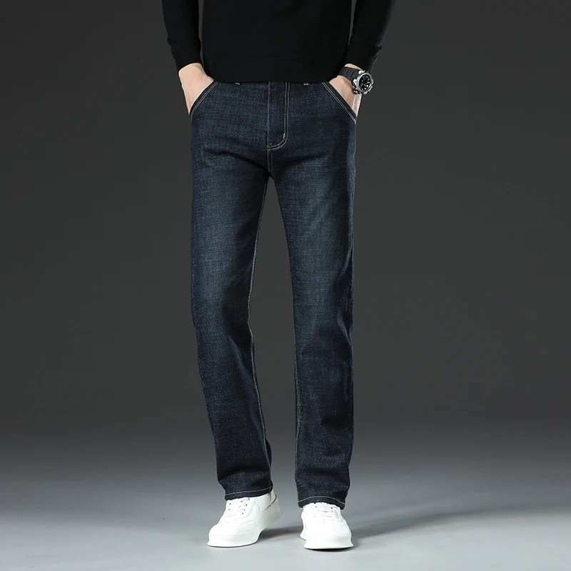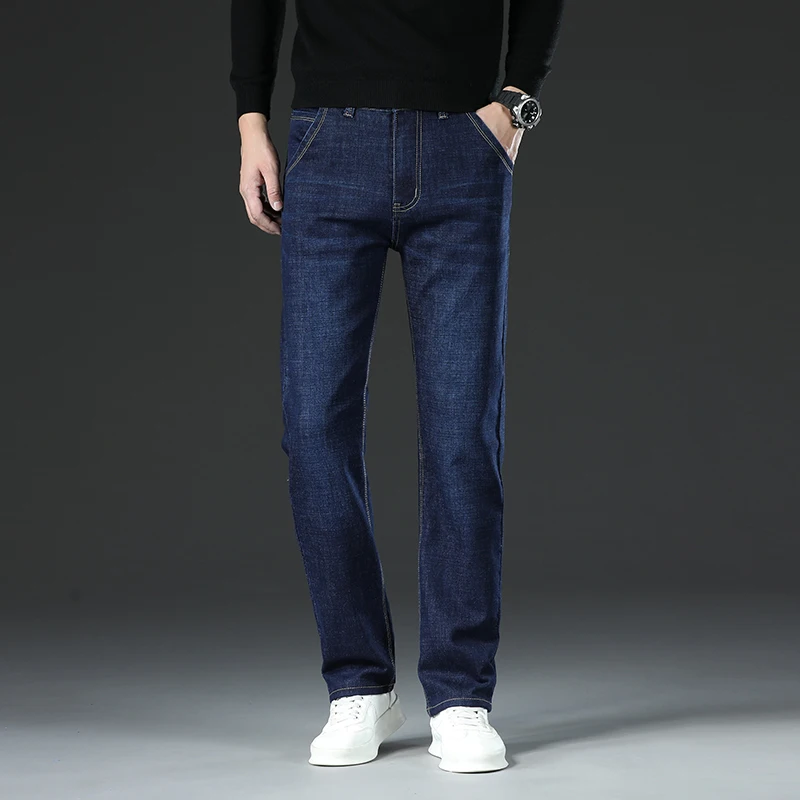 New Men Business Style Slim Fit Straight Jeans Fashion Classic Blue Black Male Stretch Casual Denim Trousers Plus Size 40